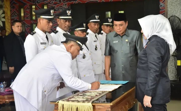 Bupati Musi Rawas Hj. Ratna Machmud Kukuhkan 13 Kepala Desa dalam Rangka Perpanjangan Masa Jabatan Kepala Desa dan TP-PKK Desa di Wilayah Kabupaten Musi Rawas Tahun 2025, bertempat di Pendopoan Rumah Dinas Bupati Musi Rawas, Selasa (26/08/2025).