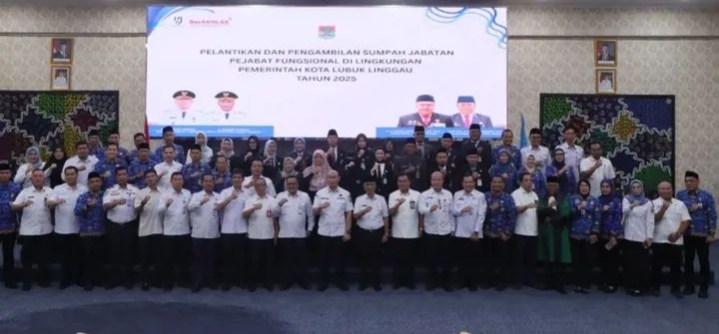 Wali Kota Lubuk Linggau, H Rachmat Hidayat melantik 20 Pejabat Fungsional di lingkungan Pemerintah Kota Lubuk Linggau, di Cinema Hall Bukit Sulap Lantai 5, Kantor Pemkot Lubuk Linggau, Rabu (1/10/2025).